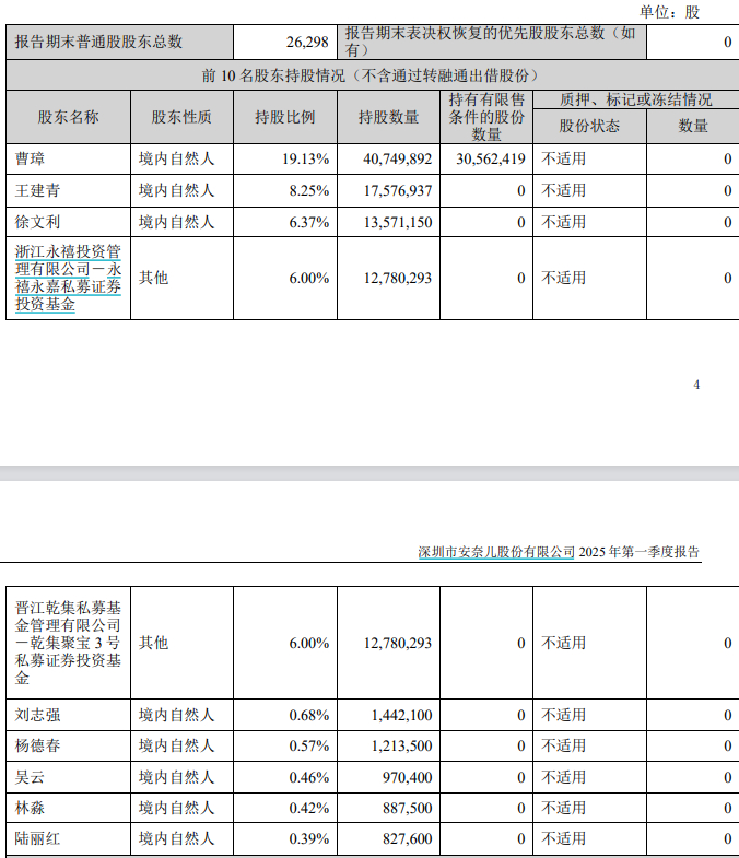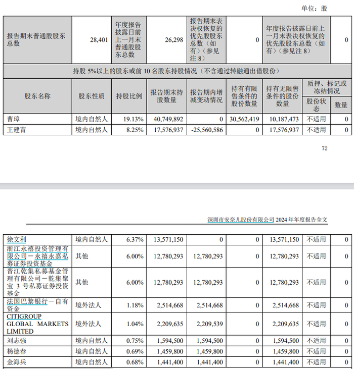 值得一提的是,根据2024年财报,截至2024年12月31日,法国巴黎银行及花旗环球金融分别位列安奈儿第六大及第七大股东,持股比例分别为1.18%、1.04%。但根据2025年一季度财报,上述两大外资投行已不在安奈儿前十大股东名单中。