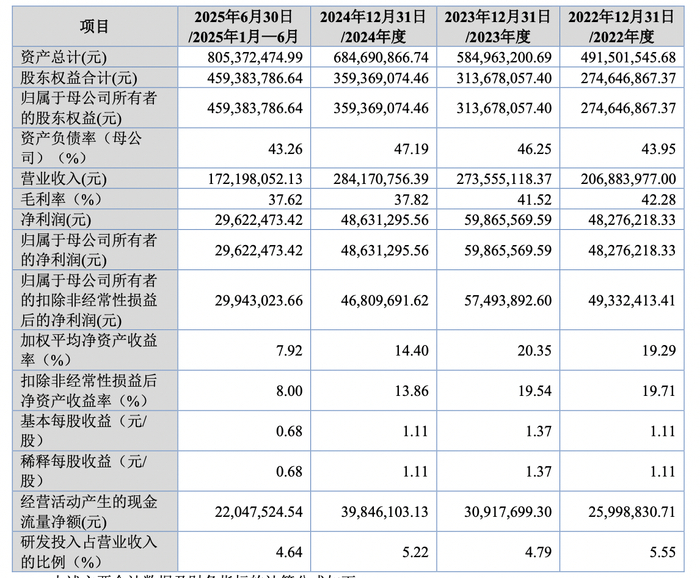 据招股书,2022年-2024年及2025上半年,铁近科技实现营收分别为2.07亿元、2.74亿元、2.84亿元、1.72亿元;归母净利润分别为4827.62万元、5986.56万元、4863.13万元、2962.25万元。