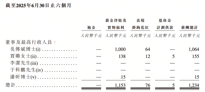 薪酬方面,2023年、2024年及2025年上半年,吴传斌薪酬总计160万元、160万元、106.4万元。