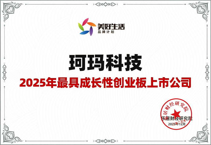 乐居财经 12月30日,由乐居财经主办的“破局·致远:2025年美好生活荣誉盛典”举行。珂玛科技荣获“2025年最具成长性创业板上市公司”。