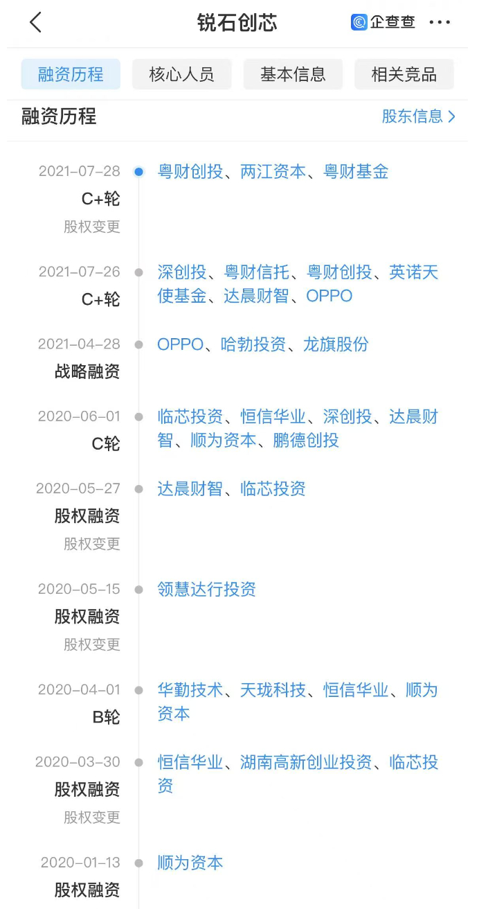 值得一提的是,自成立以来,锐石创芯完成多轮融资。其中,2020年,公司获得雷军顺为资本、天珑移动、华勤通信的战略投资,并顺利进入OPPO供应链,进一步拓展了市场版图与资金来源;2021年,股东队伍再添新成员,OPPO、华为哈勃、龙旗科技纷纷入股,同年,锐石创芯成功进入小米供应链。