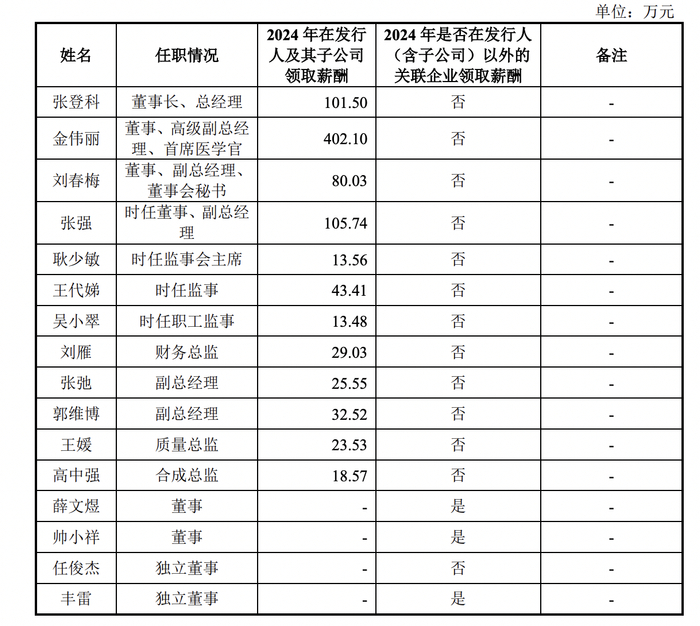 薪酬方面,2024年,张登科薪酬为101.50万元,金伟丽薪酬为402.1万元。
