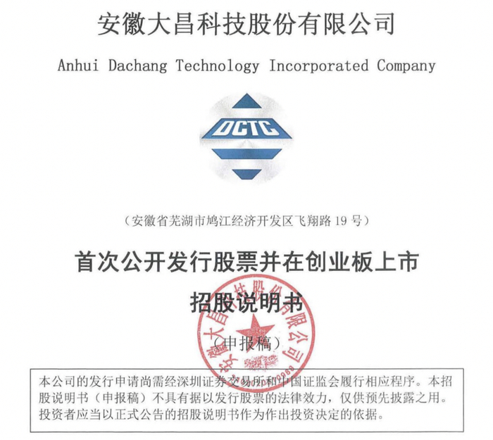 瑞财经 刘治颖 12月31日,安徽大昌科技股份有限公司(以下简称:大昌科技)创业板IPO获受理,保荐机构为中银国际证券股份有限公司,保荐代表人为刘丽、史丰源,会计师事务所为容诚会计师事务所(特殊普通合伙)。
