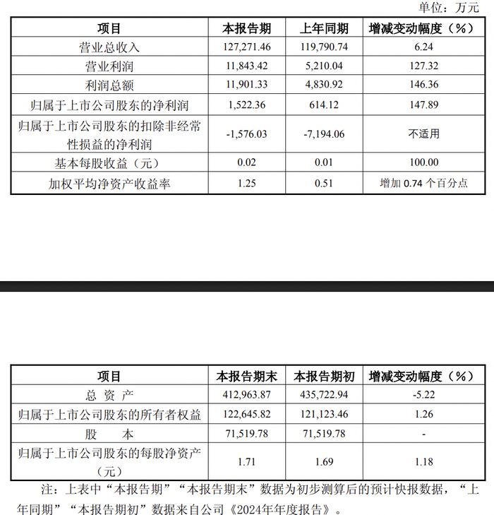 瑞财经刘治颖1月7日,泉阳泉(SH600189)公告,预计2025年度实现归属于上市公司股东的净利润1522.36万元,较上年同期(法定披露数据)614.12万元,预计上升147.89%,上升幅度超过50%。