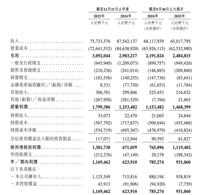 2025年前9月,海亮股份收入650.18亿元,同比减少4.55%;期内利润9.31亿元,同比增长18.56%。