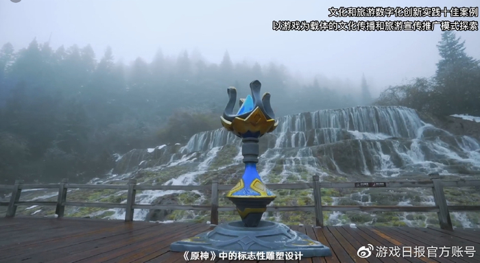 但在文旅部的视频中,不仅提到了原神中包含的文化内容,还深挖了这些文化性内容展现的背后,原神制作团队积极促进文旅游戏融合的举措。大家都知道璃月很多地区化用了中国知名风景、地貌的原型,但通过技术把场景搬到游戏、让玩家沉浸式体验只是第一步,把游戏中的内容搬到现实才是原神获奖非常重要的一个原因。原神把标志性的钟离雕塑、传送锚点“三次元化”,带到长白山等现实地区,让许多玩家慕名而来,也让许多国外玩家有了来中国旅游的愿望。这就是原神通过游戏影响力来促进文旅、对旅游产业宣传推广模式的新颖探索。