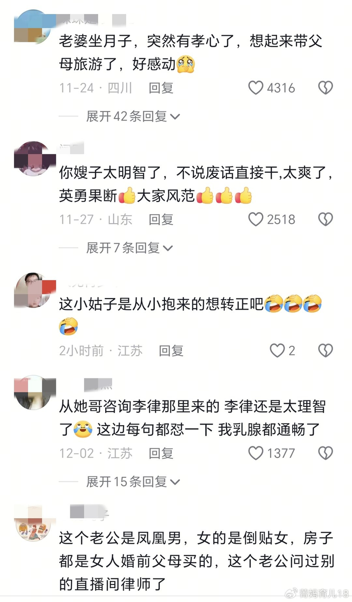 网友看到这个案例也觉得非常愤怒,请了十几天的陪产假,结果陪产假陪的不是产妇,陪的是自己的父母,怎么老婆坐月子自己就突然有孝心了,想起来带父母去旅游了?
