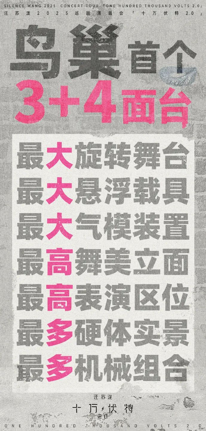 2025年,“十万伏特2.0”巡回演唱会全面升级,首站选择在鸟巢连开三天,成为2025年鸟巢的首场演唱会。