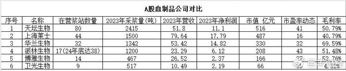 血液制品行业整体处于供不应求状态,血浆量决定企业的收入水平,产品数量决定企业毛利水平。企业关键竞争能力主要在于供给端的扩大即对浆站资源的把握,主要体现在两个方面,一是浆站数量的拓展,二是单个浆站采浆量的提升。其次还要看产品的的综合利用率,主要表现在产品结构及数量。 以下是A股上市血制品公司简单对比: