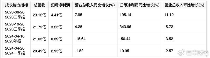 2024年一季报显示,天士力总营收为20.49亿,归母净利润为2.95亿元,营收总收入同比增长-1.52%,归属净利润同比增长10.95%。
