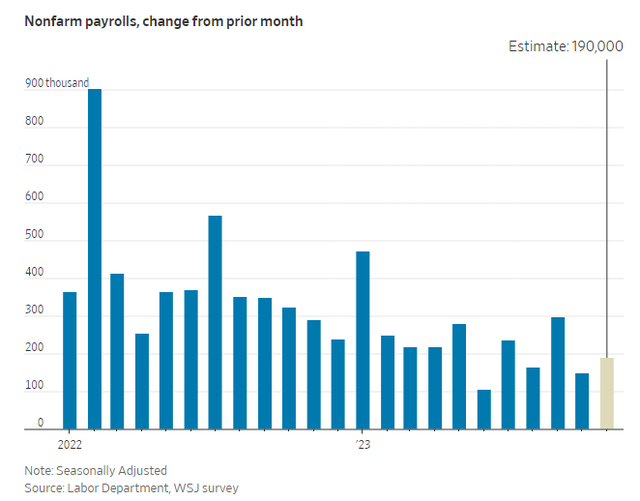 截至今年10月,雇主平均每月增加23.9万个工作岗位,这比2022年的每月增加近40万人和2021年的每月增加60万人有所放缓。接受外媒调查的经济学家估计,这种降温趋势在11月继续,就业人数料将增加19万人。