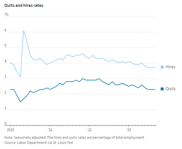 在没有其他好工作的情况下,工人们可能有充分的理由不离职。此外,雇主今年的招聘速度也有所放缓,这表明雇主们不再那么急于填补职位空缺。