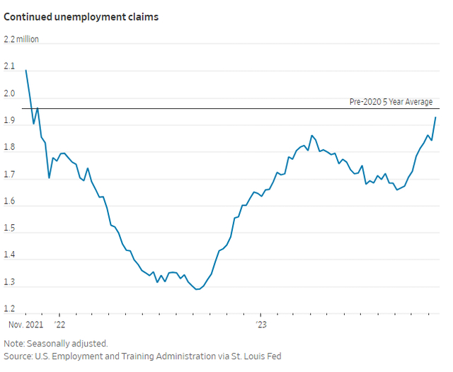 目前,越来越多的人在被解雇后很难找到工作。美国劳工部的数据显示,近几周有近200万美国人持续申领失业金,是大约两年来最多的。虽然这一水平仍处于历史低位,才刚刚接近新冠疫情前的平均水平。