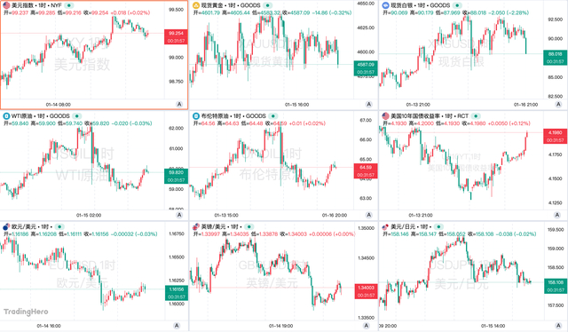 本周市场主线围绕两条线索展开:一是特朗普政府对美联储主席鲍威尔的调查传闻及其引发的“美联储独立性”担忧,反复冲击美元与利率预期;二是伊朗相关地缘政治消息频繁反转,主导金银油的剧烈波动。跨资产表现呈现出明显的“避险—回吐—再定价”节奏。