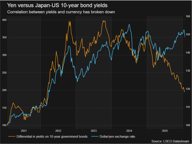 即便有联合干预的加持,日元汇市干预的效果仍存在上限,且这类干预被普遍认为只能放缓或平滑汇率波动,而非逆转汇率走势;尤其是在日本财政危机担忧这一明确利空驱动存在的情况下,干预的作用更会大打折扣。