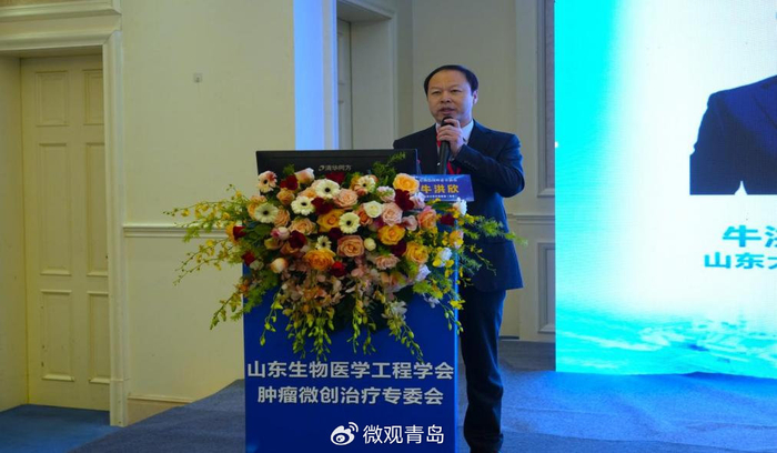 11月8日上午八时,中国抗癌协会肿瘤微创治疗专委会半岛论坛暨山东生物医学工程学会第六届肿瘤微创治疗专委会第一次学术会议开幕,马建军教授主持开幕式,联勤保障部队第九七〇医院潘裕亮院长、山东生物医学工程学会肿瘤微创治疗专委会主任委员牛洪欣教授、山东省医师协会肿瘤微创医师分会主任委员刘吉兵教授、山东省医学会肿瘤微创治疗专委会主任委员李成利教授、中国医药教育协会副会长肖越勇教授分别致辞。开幕式结尾环节,驼人集团为山东大学齐鲁医院(青岛)介入科授予联合培训基地牌匾。