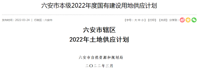 3月22日,六安市本级2022年度国有建设用地供应计划出炉。