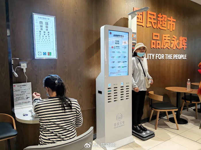 同时,门店在入口处增设了便民服务区,微波炉、自助饮水机、免费使用1 小时的充电宝、身高体重测量仪、血压计、视力检查表、洗手池、四季免费茶饮等便民设施,同时还增加了宠物寄存处,为爱宠人士提供便利。
