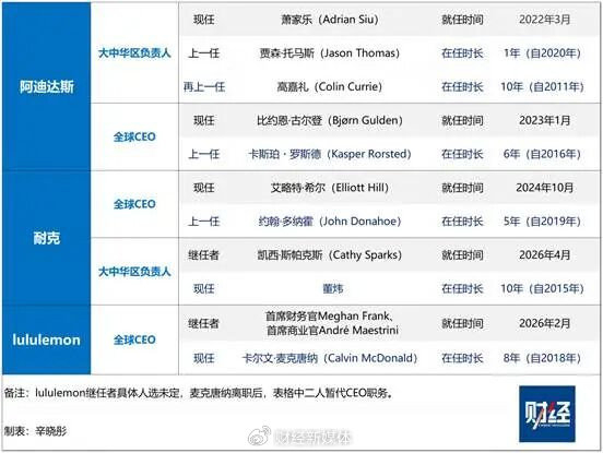 耐克和阿迪达斯至少选定了CEO继任者,运动行业中市值排名第四的lululemon对下一任CEO人选至今悬而未决。在此之前这家公司已面临业绩压力。2025财年前三个财季(2025年2月至10月)增速放缓,lululemon净利润分别同比下滑2.13%、5.6%和12.8%。