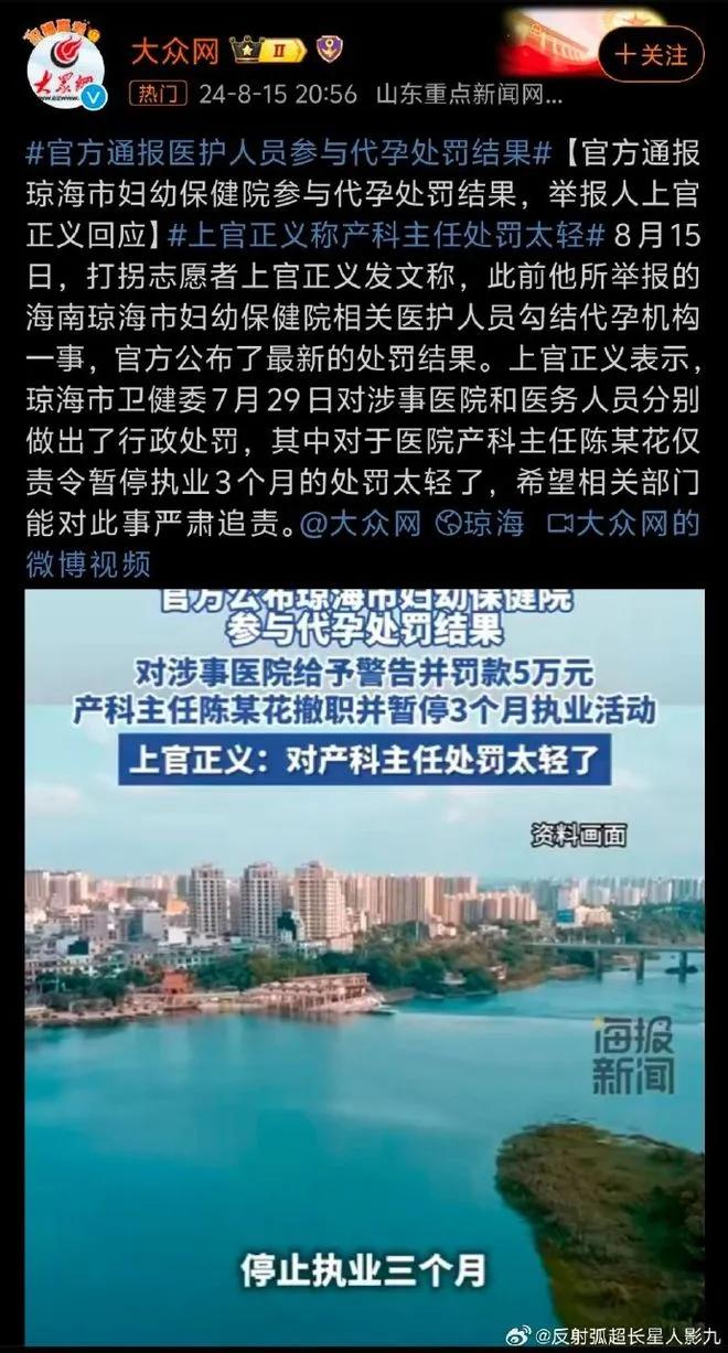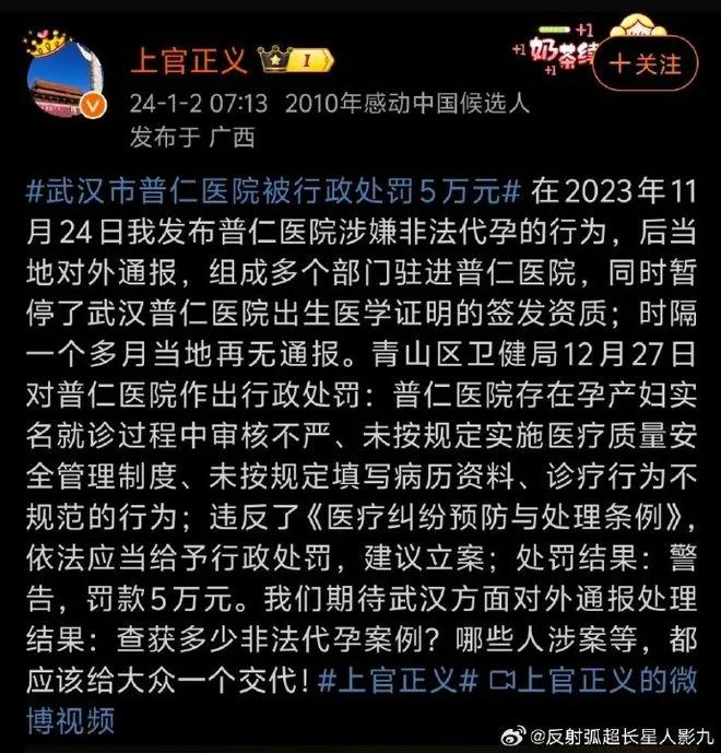 武汉一家医院涉嫌非法代孕,处罚5万元。