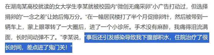 它们打着“无痛无害采卵”的旗号,哄骗到很多年轻女孩,尤其是经济困难、有助学贷款的女孩,让她们以为真有轻松又来钱快的好事。