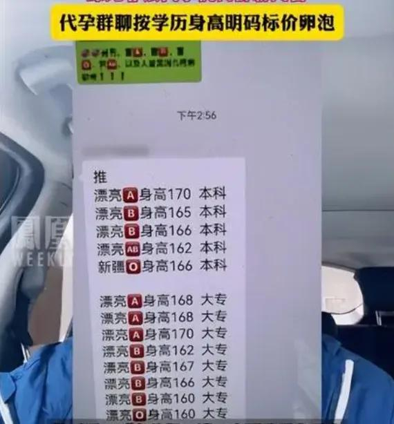 代孕群里,女孩们的信息被分门别类,根据学历身高外貌年纪的不同,卵泡价格也不同。