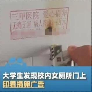 如今在大学校园或某些公共场所的女厕所,常常能看到墙上写着捐卵的小广告。