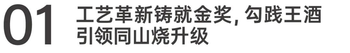 好品质迅速赢来行业肯定。2019年,在布鲁塞尔国际烈酒大奖赛上,勾践王酒首获金奖;同年,在新加坡国际烈酒大奖赛上,勾践王酒再次斩获金奖;2021年,在美国旧金山国际烈酒大奖赛上,勾践王酒荣获双金奖;2022年,在法国巴黎国际烈酒大奖赛上,勾践王酒再获金奖殊荣……一系列的“金奖”加持,勾践王酒已然成为同山烧高质量发展的优秀典范。