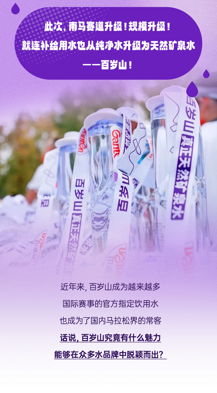 今年,国内不少马拉松赛事都进行了优化。除了赛道优化,补给优化也是极为关键的一环。天然矿泉水作为水种“天花板”,备受赛事方青睐。北京马拉松、广州马拉松、成都马拉松、南京马拉松等大型赛事纷纷升级赛道用水,将往年用的天然水、纯净水,升级成为百岁山天然矿泉水,为跑者们提供充足补给,提供了更好的赛事体验。