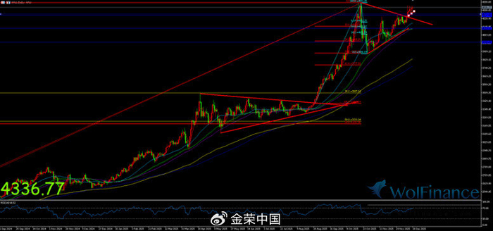 国际黄金周三维持震荡走势,周三早间金价最低下探4300一线后短线走高,亚盘时段金价维持上涨走势,进入下午盘金价最高上探4342一线后短线冲高回落,欧盘时段金价扩大短线跌幅最低下探4306一线后再度触底反弹一度企稳于4322下方窄幅整理。美盘时段金价扩大日内涨幅最高上探4349一线后逐步陷入短线4323-4346区间震荡。日线录得阳线,金价逐步陷入高位震荡走势,继续加剧日线移动平均线较为规整向上发散排列,维持日线级别多头趋势指引参考,日线级别RSI呈超买表现。小时级别显示,短期金价高位震荡回落逐步形成小时级别均线支撑位回踩走势,小时级别短期指标呈向下交叉排列,形成死叉表现,警惕小时级别见顶表现,短线回落面临较为密集指标支撑位影响。四小时级别移动平均线维持较为规整多头趋势排列,短线回落关注指标支撑表现。日内谨慎维持逢低多交易思路。