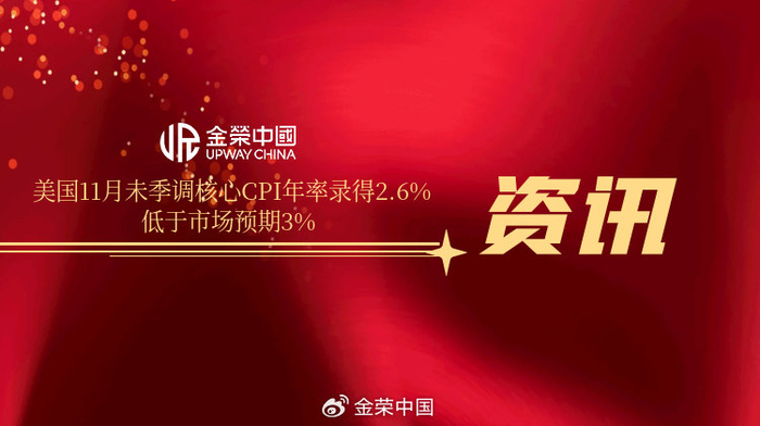 美国11月未季调核心CPI年率录得2.6%,低于市场预期3%;美国11月未季调CPI年率为2.7%,低于市场预期3.1%。