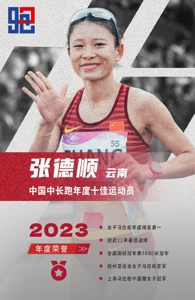 三月的名古屋马拉松,张德顺跑出2:24:05创造女子马拉松近11年来最佳成绩,中国女子马拉松徘徊于226左右的水平多年后,张德顺成为那个破局者,该成绩也跻身历史前十。杭州亚运会她以2:27:55夺得银牌,年底的上海马拉松跑出2:28:16再夺中国籍冠军。
