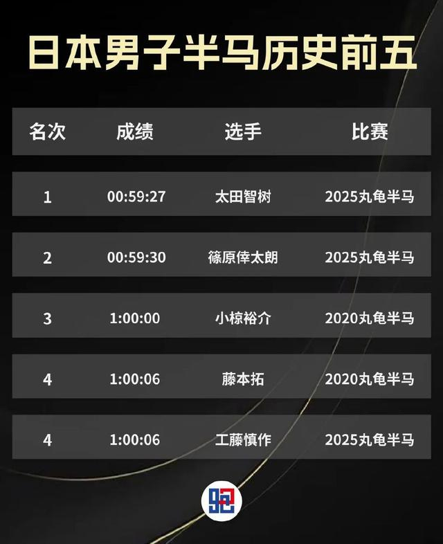 太田智树的新纪录之前,日本男子半程马拉松的原纪录是1小时00分00秒,由小椋裕介创造于2020香川丸龟国际半程马拉松赛,而本场比赛过后,日本男子半马历代前五均产生于丸龟半马。