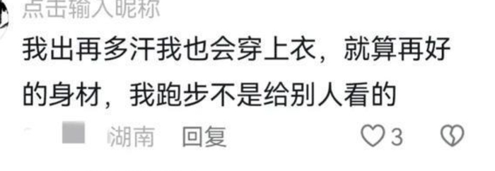 另一方面,也有不少人表示不以为然,认为光膀子跑步是个人选择,只要不干扰他人、未触犯法律法规,就不应成为被干涉和指责的对象。有网友认为,天热脱去上衣跑步是在追求身体舒适和健康,并没有侵害他人的合法权益,因此不该被视为不文明行为。