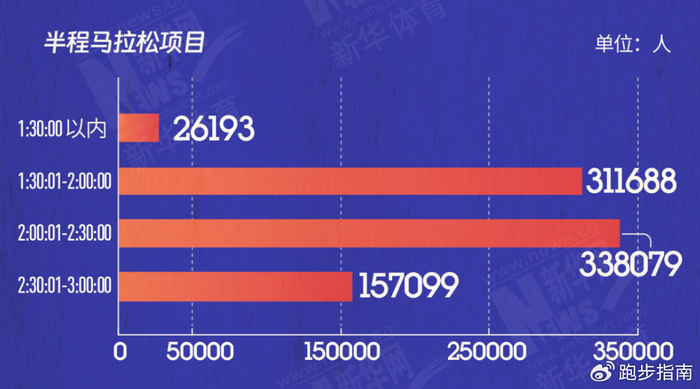 在半程马拉松项目中,有26,193名选手在1小时30分钟内完成了比赛,337,881名选手在2小时内完成了比赛,与2022年相比,人数显著增长。