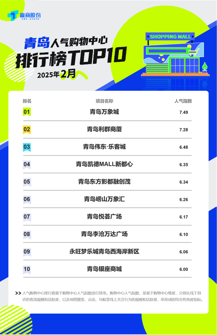 在赢商股份最新发布的《2月青岛人气购物中心排行榜》中,多个头部标杆购物中心表现出色,万象城(一期二期)、利群商厦人气指数超过7分,拿下一二名。
