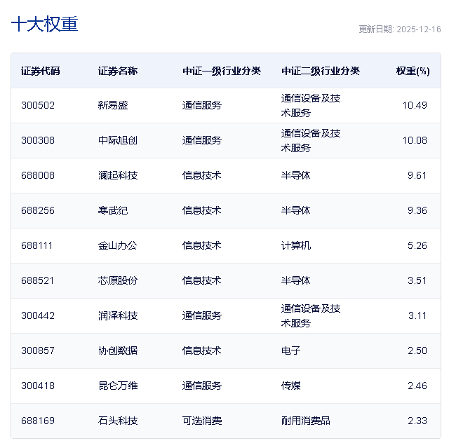 可以看到,其中CPO的占比其实也不那么高,两家龙头也就是20%左右,与半导体差距不大,同时还有一些游戏、软件、消费品公司也进入十大权重,分布比较合理。