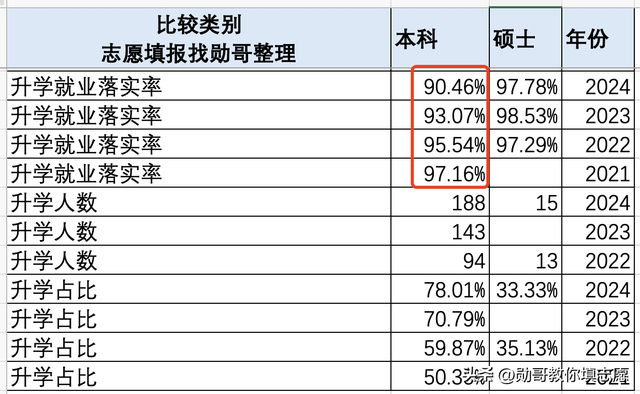 再看总体升学就业落实率,21年为97.16%,24年为90.46%,下降的趋势是非常明显的。