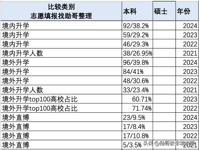 2、2024年境内升学人数占比,较2023年爆升了近10%,但还是没有境外升学的人数占比高。