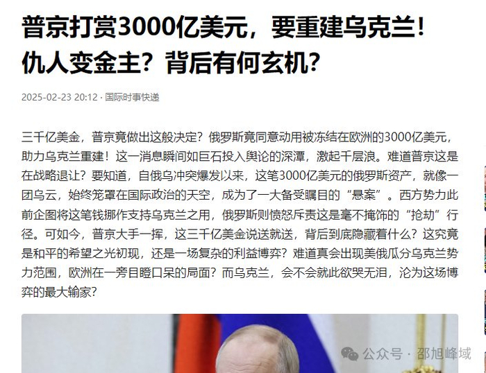 具体可点击或者复制搜索:特朗普会先让俄乌停战、还是让以打伊朗?如大帝不听呢? 最后,关于俄罗斯和乌克兰局势的最终结果,现在美国和乌克兰的协议基本框架清晰,如果大帝还倔强,特朗普应该就会让英法等驻军进去——即便大帝不倔强,特朗普应该还是会让欧洲驻军进去,因为特朗普的目的之一,是让欧洲和俄罗斯最大化对立——对此,英国瑞典等是坚决主张派兵进去的,还有立陶宛爱沙尼亚拉脱维亚这三个从苏联分出来的国家,以及波兰、罗马尼亚等曾经深受其害的国家,更希望如此。 如果这样,那美国就会在乌克兰获利最大、但没有直接驻军,当然会提供总体保障,防空的、兜底的。 还有,俄罗斯方面也希望能参与在乌克兰的“重建”工作——用被欧洲扣押的3000亿美元参与,拿不回来就退一步、以图在以后的乌克兰握有一定话语权,当然,也希望更多钱用在自己占领区强化控制。但这个愿望可能得不到实现。这方面也有消息: