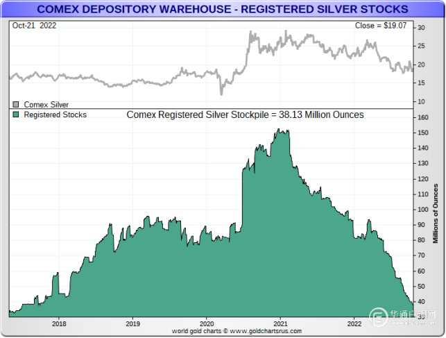 尽管历史低点接近2000万,但下图显示了近几个月来COMEX现货白银持有量是如何急剧下降的。
