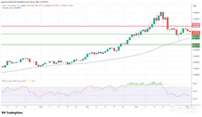由于交易商关注强势美元,银价试图收于47.00-47.20美元支撑位下方。