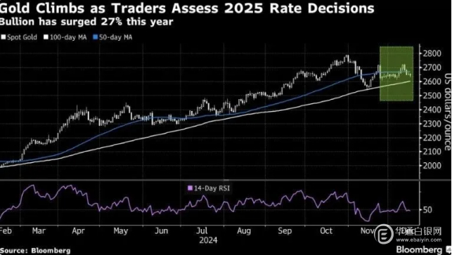 【华通铂银网12月25日讯】•受到央行购买的推动,黄金价格在2024年飙升了25%以上。