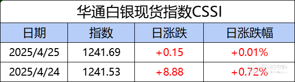 华通白银现货指数CSSI走势日报(2025-04-25)
