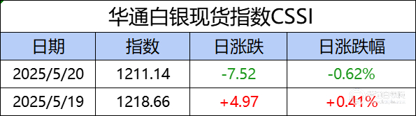 华通白银现货指数CSSI走势日报(2025-05-20)