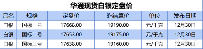 上海华通现货白银结算价(2025-12-30)