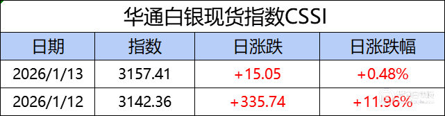 华通白银现货指数CSSI走势日报(2026-01-13)