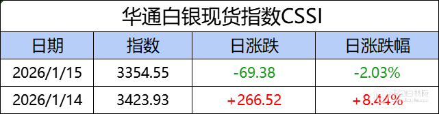 华通白银现货指数CSSI走势日报(2026-01-15)