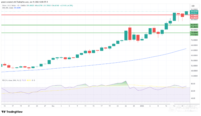若银价突破95.00美元水平,则将为测试关键的100美元水平铺平道路。
