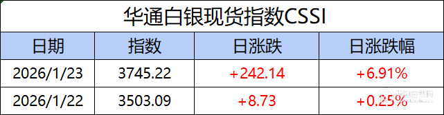 华通白银现货指数CSSI走势日报(2026-01-23)